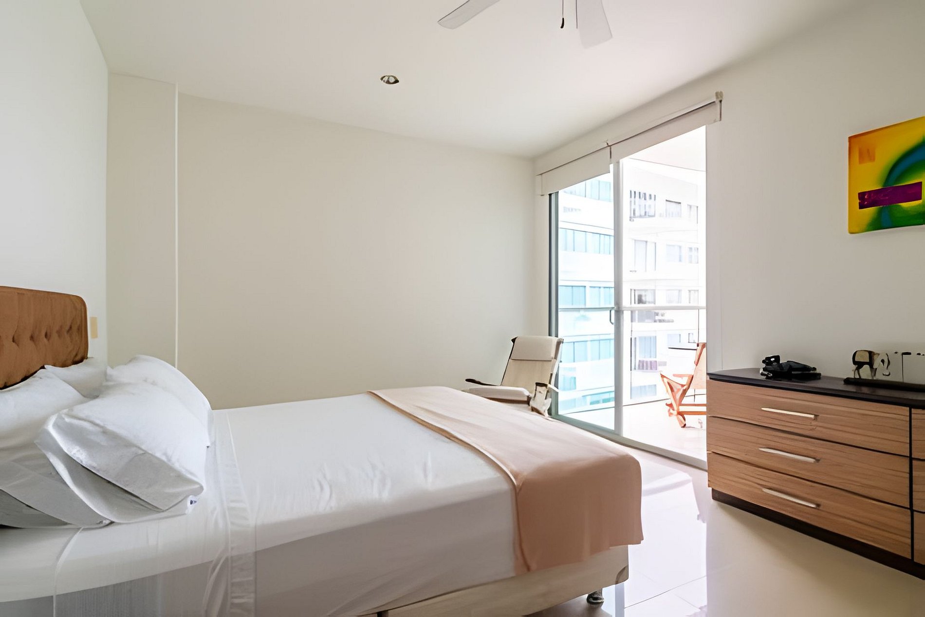 Cozy 1-bedroom apartment with direct access to the beach in the exclusive area of Morros in La Boquilla. Just 5 minutes from the airport and 10 from the historic center of Cartagena de Indias. Surrounded by mini markets, drugstores, restaurants and convenient access roads. The building has multiple swimming pools for adults and children, gym, 24/7 security. The apartment has a large balcony, 1 bedroom, 2 bathrooms, open kitchen, air conditioning and covered parking.