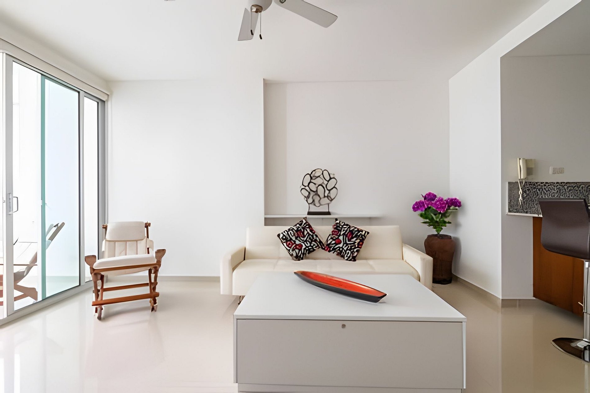 Acogedor apartamento de 1 dormitorio con salida directa a la playa en exclusivo sector de Morros en La Boquilla . A solo 5 minutos del aeropuerto y 10 del centro histórico de Cartagena de Indias. Rodeado de mini mercados, droguerías, restaurantes y cómodas vías de acceso. El edificio cuenta con múltiples piscinas para adultos y niños, gimnasio, vigilancia 24/7. El apartamento consta de gran balcón, 1 habitación, 2 baños, cocina abierta, aire acondicionado y parqueadero cubierto.