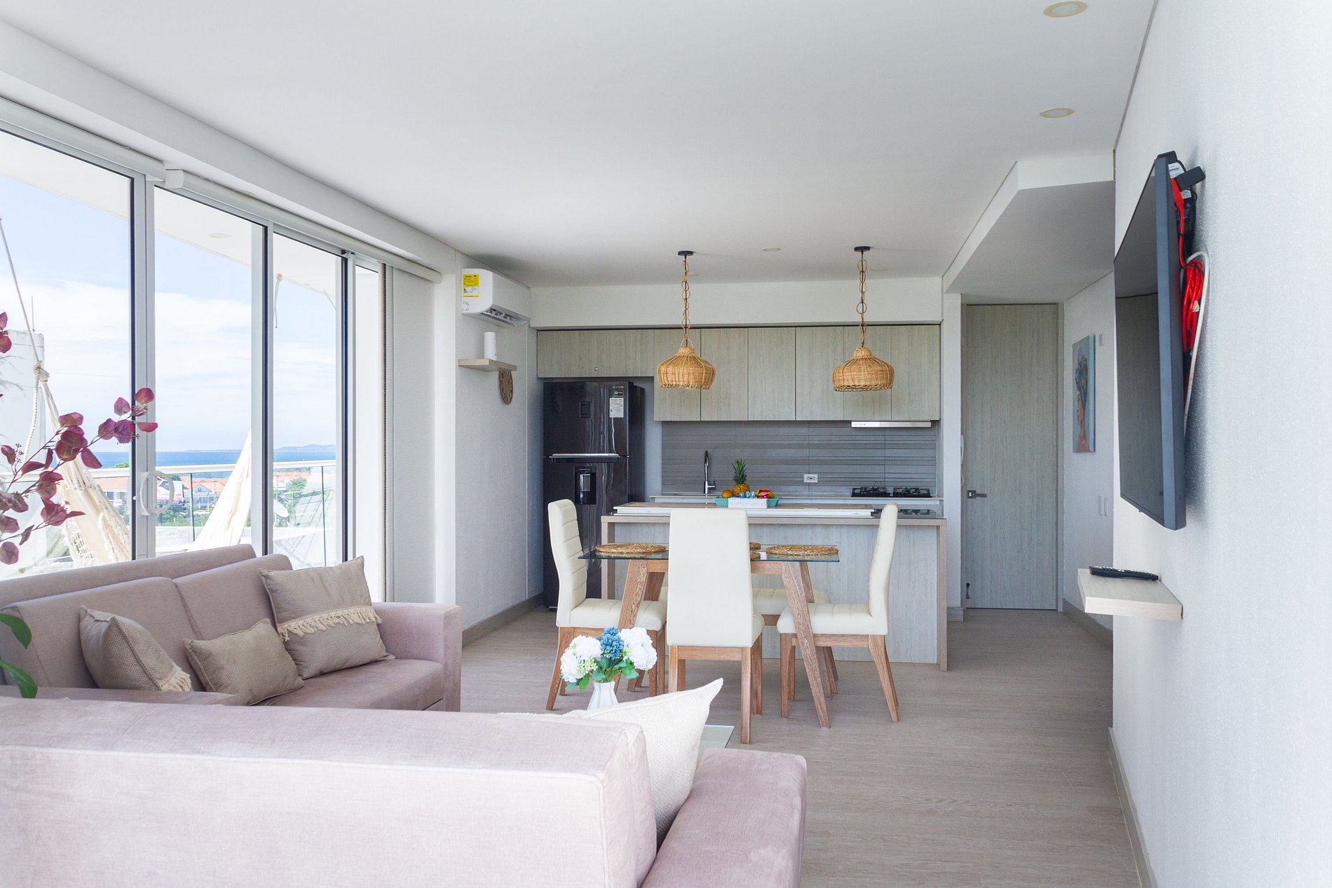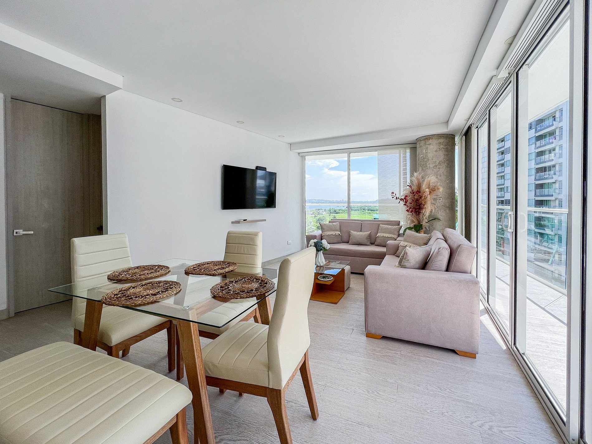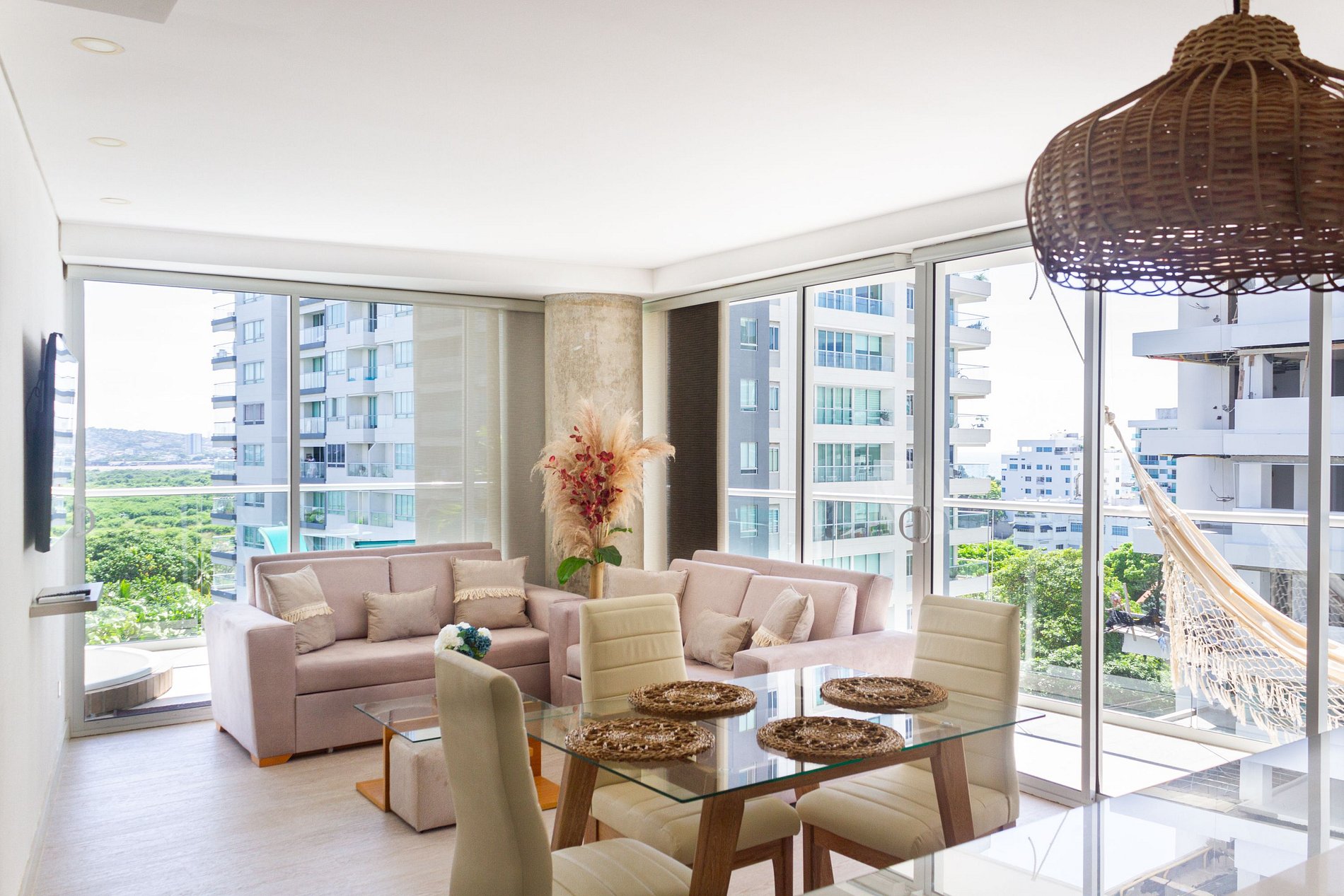 Exclusivo y moderno apartamento con todas las comodidades para hasta 6 personas en el imponente edificio Martinique en el sector de Cielo Mar/ Morros en La Boquilla, a 2 km del aeropuerto y junto a unas de las mejores playas de la ciudad. El edificio cuenta con seguridad 24/7, Jacuzzi, Piscina, Baño Turco y Gimnasio. El apartamento consta de gran balcón, 2 dormitorios, 2 baños completos, cocina abierta, aire acondicionado y parqueadero cubierto. Internet de alta velocidad