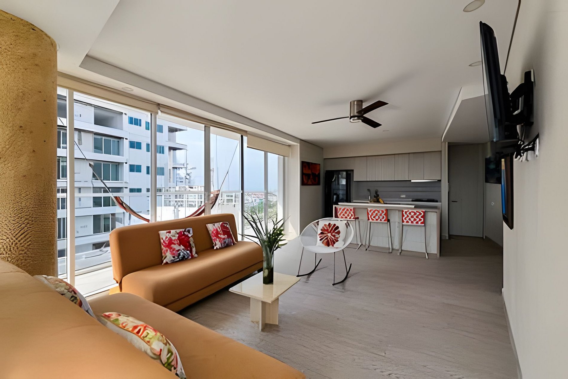 Exclusivo y moderno apartamento con todas las comodidades para hasta 6 personas en el imponente edificio Martinique en el sector de Cielo Mar/ Morros en La Boquilla, a 2 km del aeropuerto y junto a unas de las mejores playas de la ciudad. El edificio cuenta con seguridad 24/7, Jacuzzi, Piscina, Baño Turco y Gimnasio. El apartamento consta de gran balcón, 2 dormitorios, 2 baños completos, cocina abierta, aire acondicionado y parqueadero cubierto.