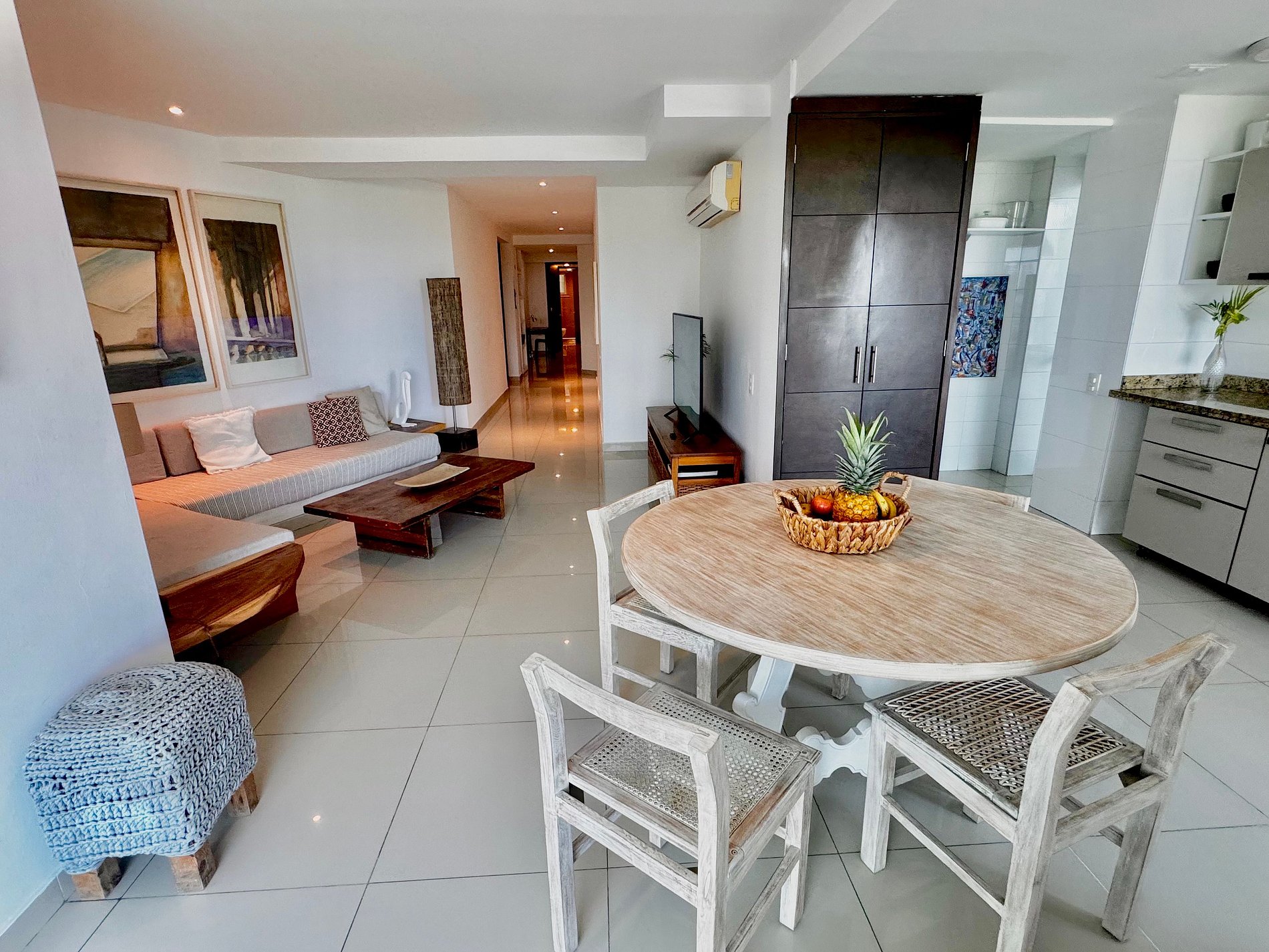 El apartamento esta situado en el piso 3 del edificio y consta de gran terraza, 3 habitaciones con aire acondicionado . Son en total 3 baños, cocina abierta, terraza y parqueadero cubierto.