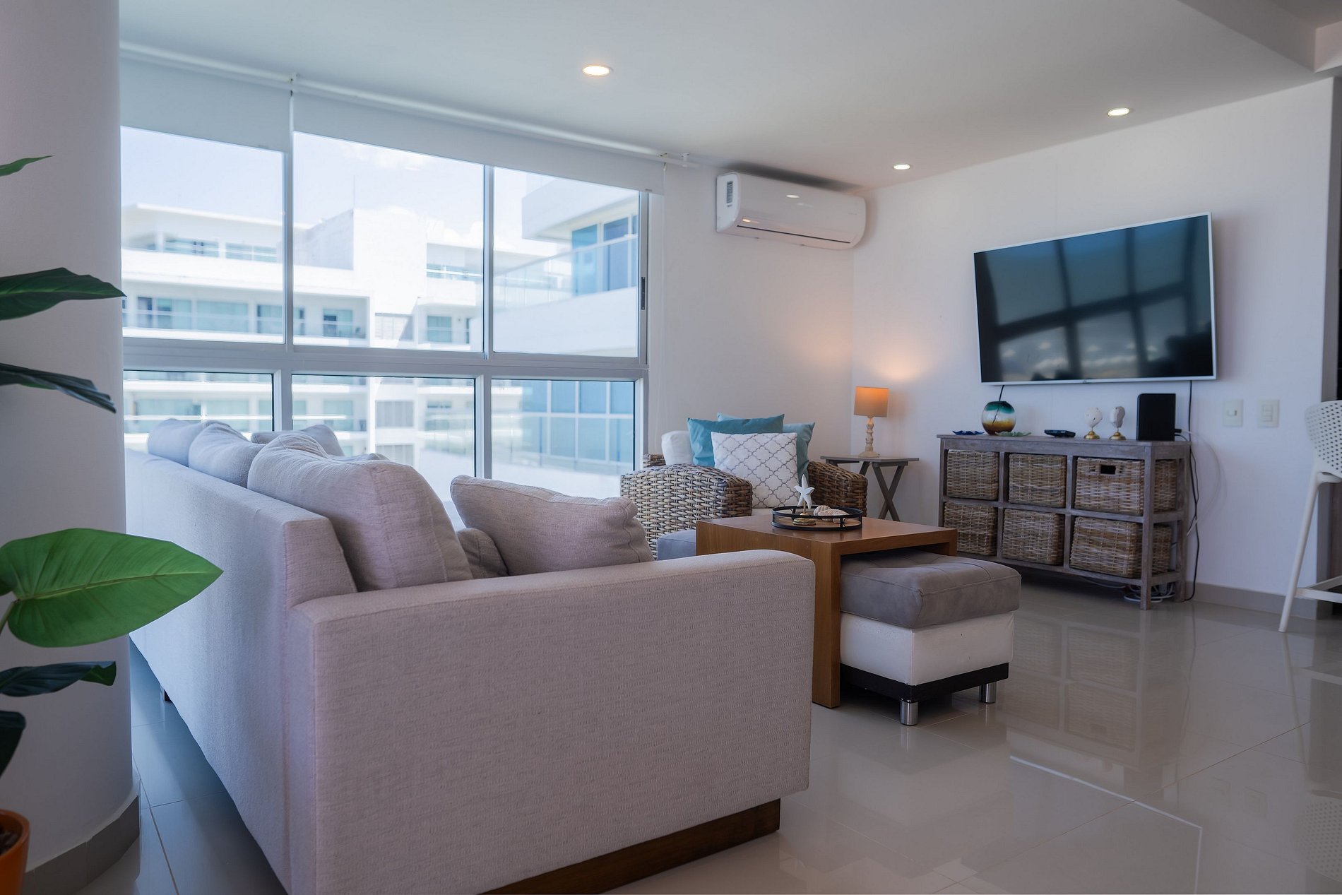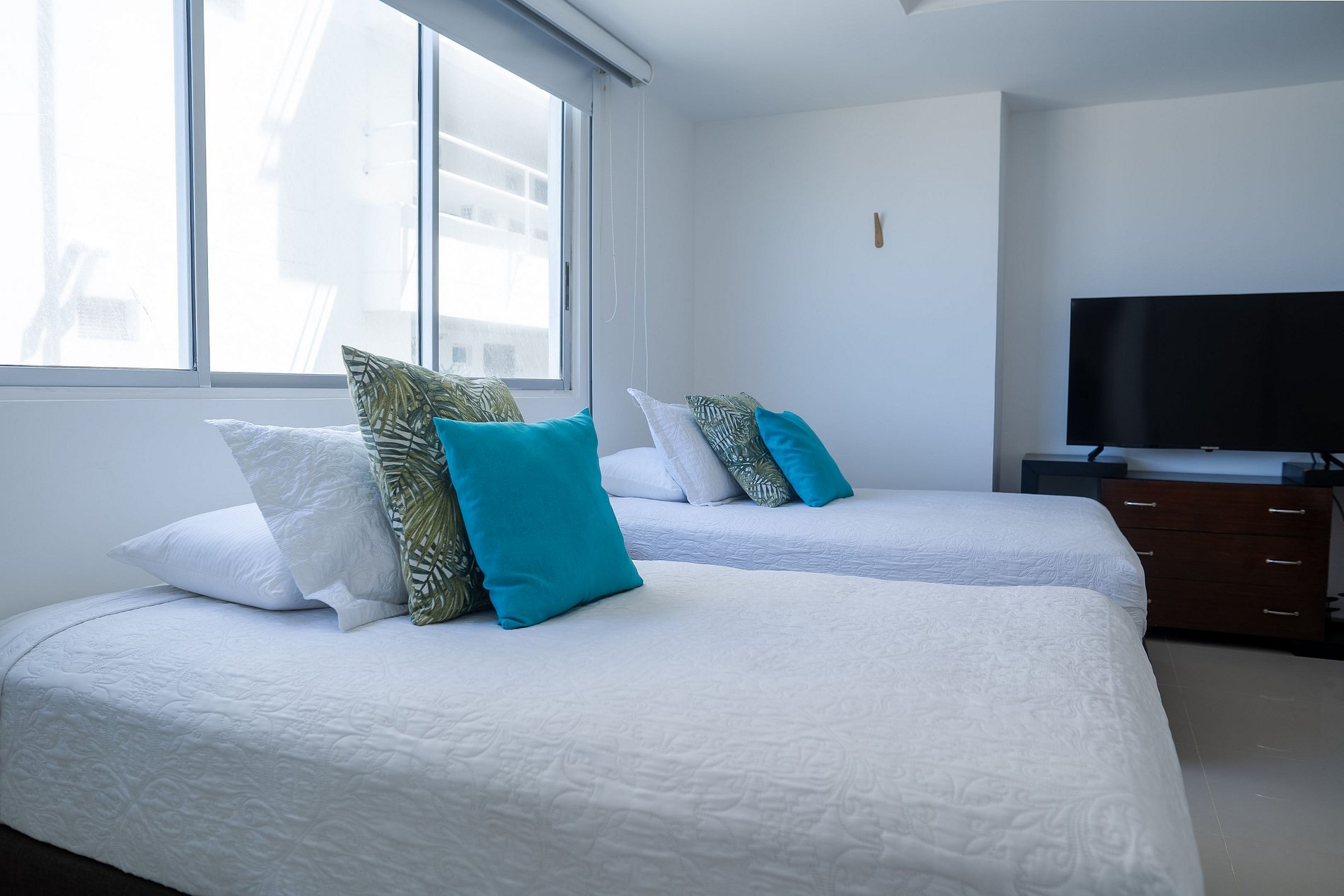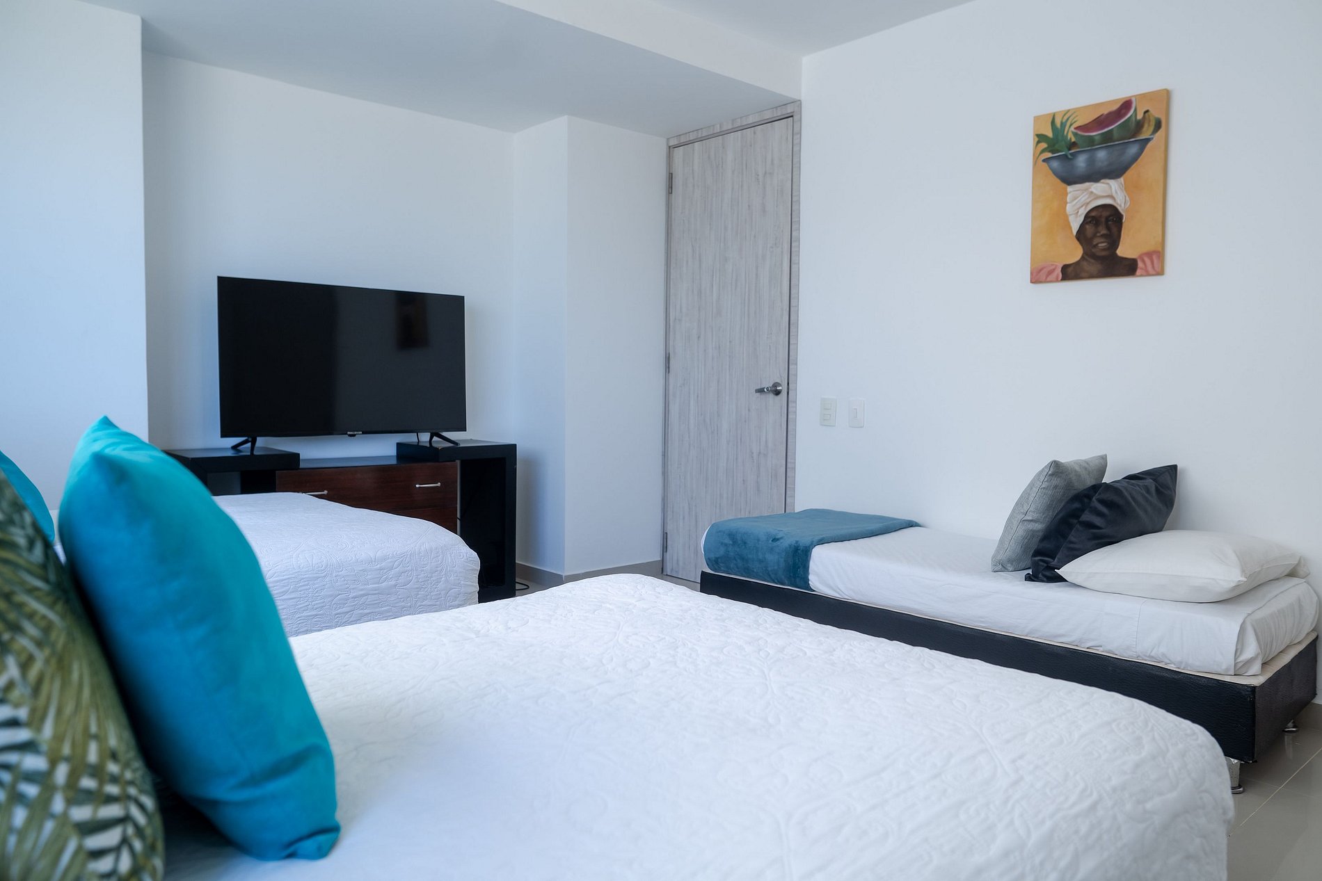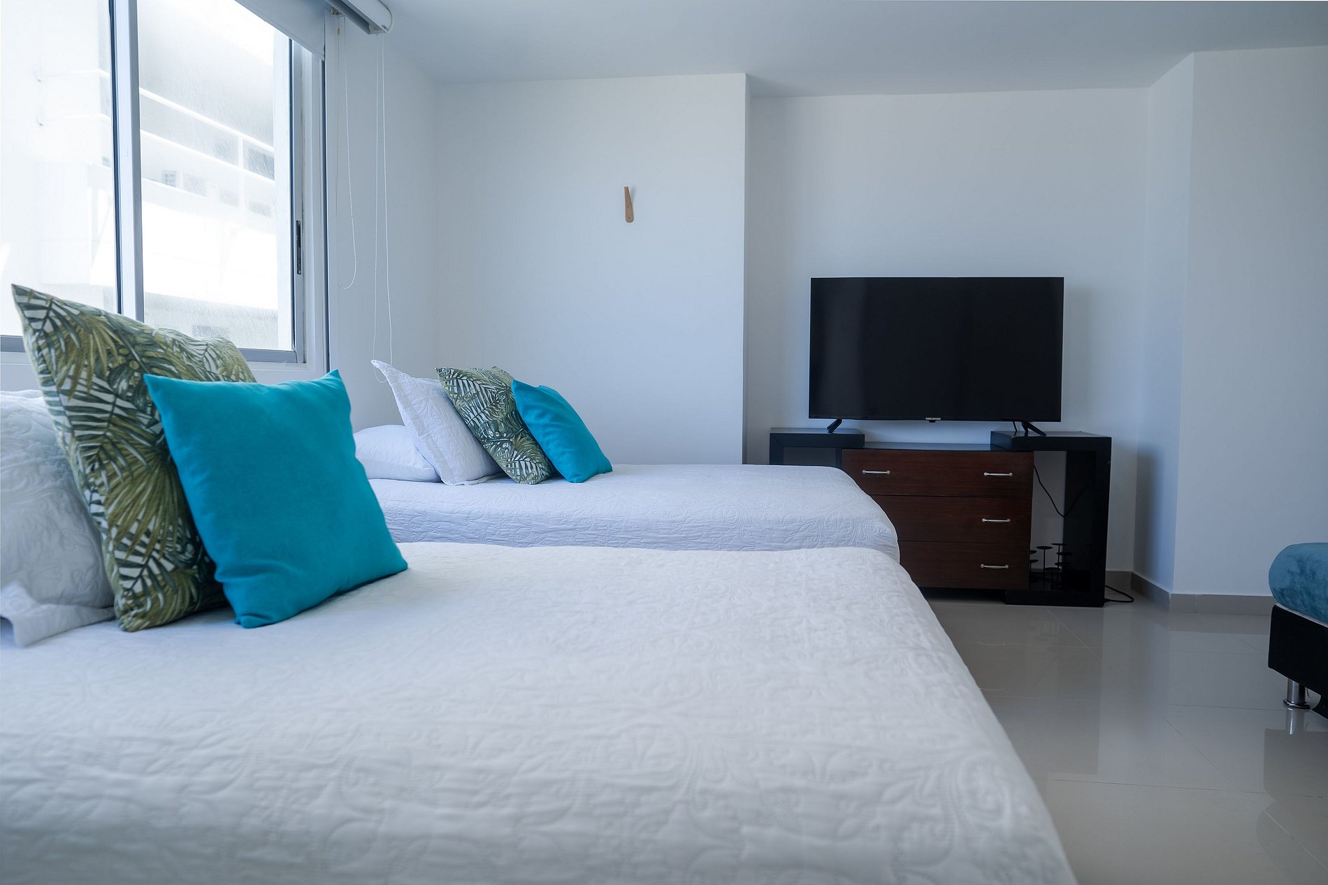 O apartamento possui 3 quartos e capacidade máxima para 10 pessoas, embora conte com apenas 5 camas e possibilidade de berço ou cama extra mediante solicitação. Os quartos estão distribuídos da seguinte forma: um com cama king, banheiro privativo, ar-condicionado e smart TV; o segundo com 3 camas, sendo 2 delas de tamanho intermediário (1,20) e outra menor (0,70, ideal para criança pequena), ar-condicionado, televisão e banheiro privativo; e o terceiro com uma cama queen, ar-condicionado e banheiro. A sala está equipada com TV de tela plana e ar-condicionado. Ao lado da sala, encontram-se a cozinha e a sala de jantar. O espaço conta com todos os utensílios necessários para cozinhar, lavar, passar roupa, tomar banho e descansar com conforto. Além disso, oferece internet com Wi-Fi de alta velocidade, ideal para trabalho remoto ou videochamadas com excelente qualidade. Aqui você vai se sentir em casa. A decoração é minimalista e agradável; desde o primeiro momento você perceberá uma energia positiva para aproveitar ao máximo sua estadia. O apartamento também possui um terraço amplo, onde é possível relaxar e contemplar um lindo pôr do sol com vista panorâmica para a Ciénaga de La Virgen, além de um terraço lateral com vista para o mar do Caribe. Durante sua estadia, estaremos atentos a qualquer necessidade, oferecendo orientações para passeios e excursões. Temos certeza de que você não vai querer ir embora.
