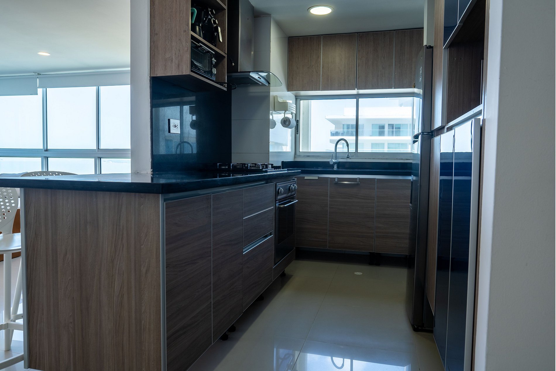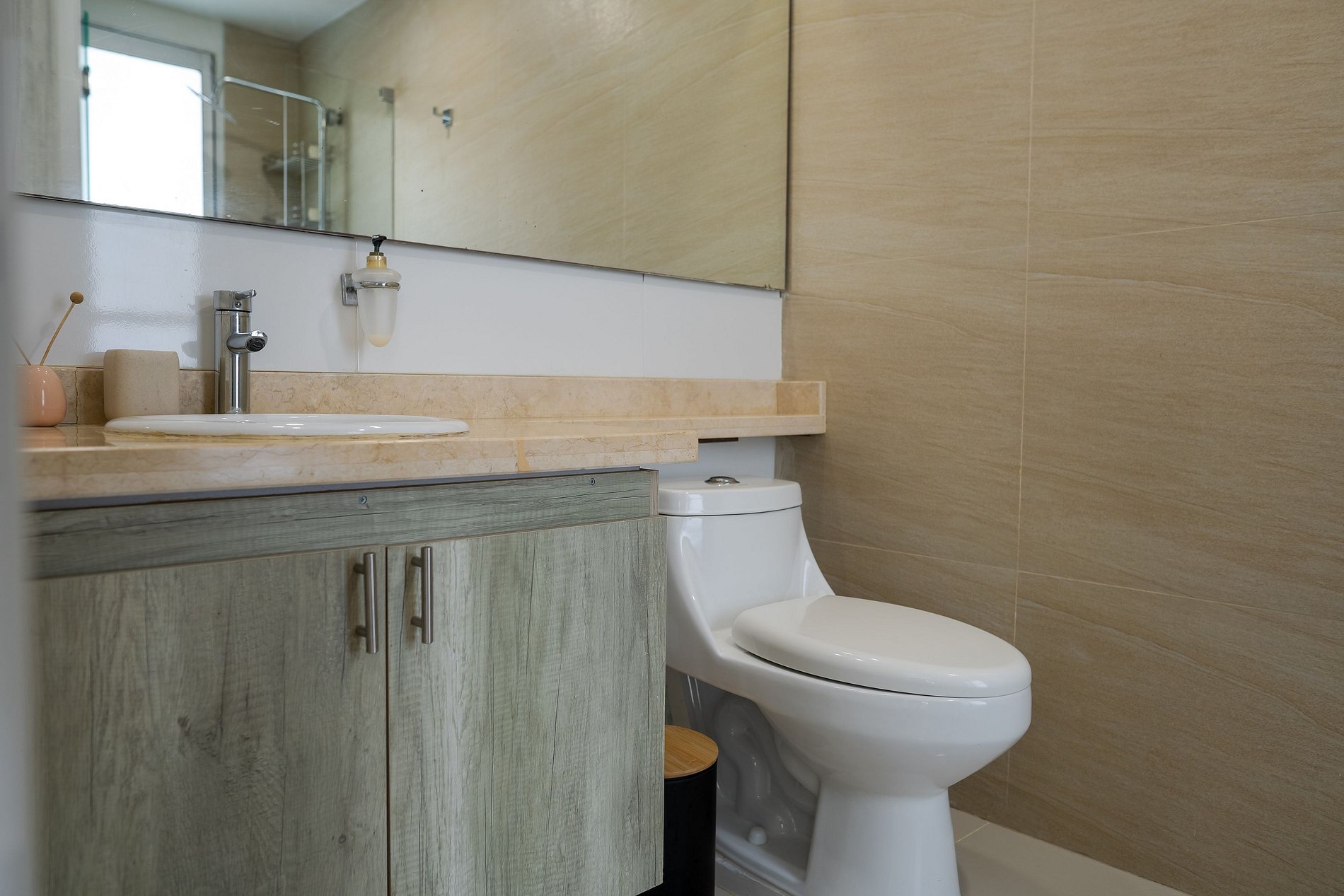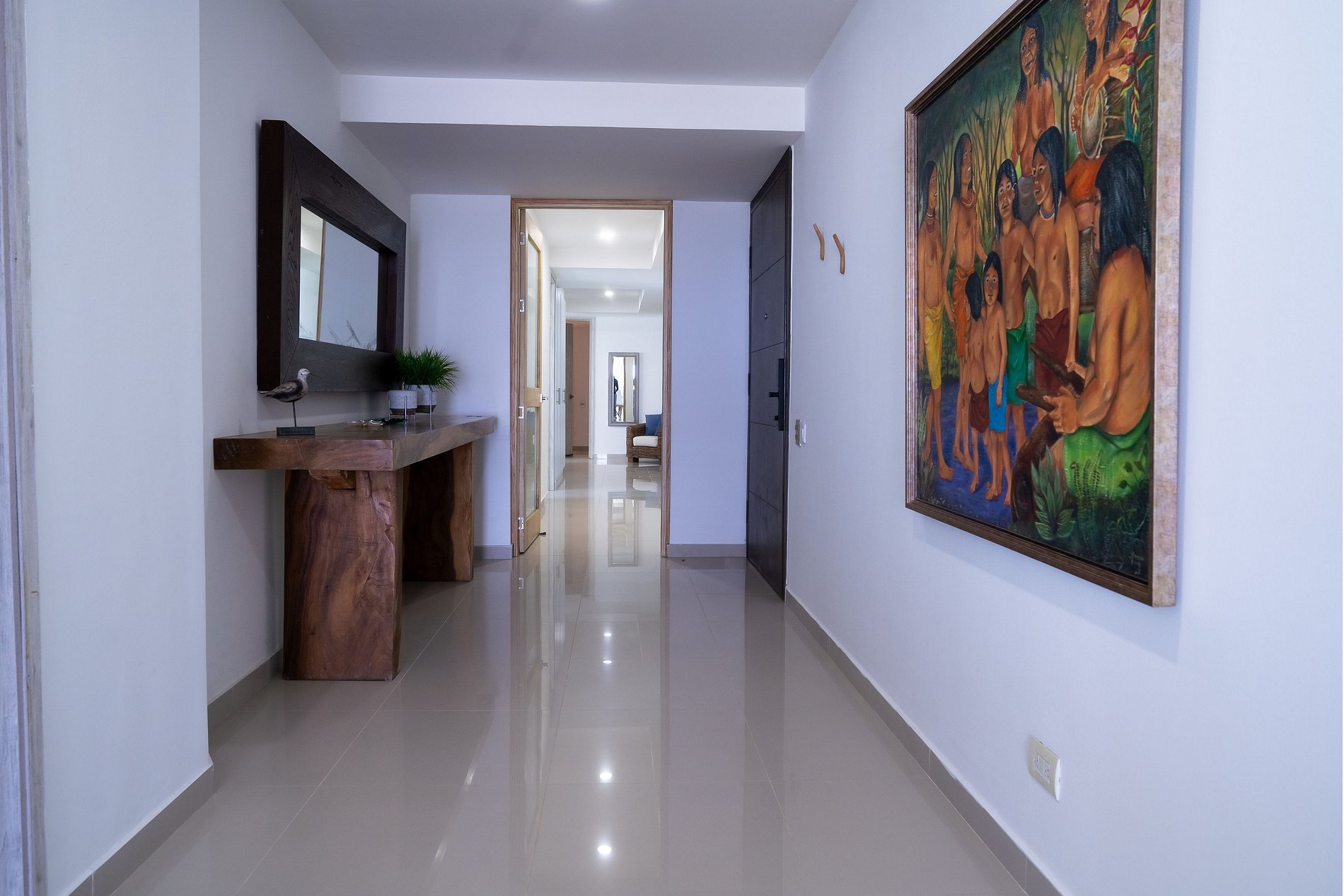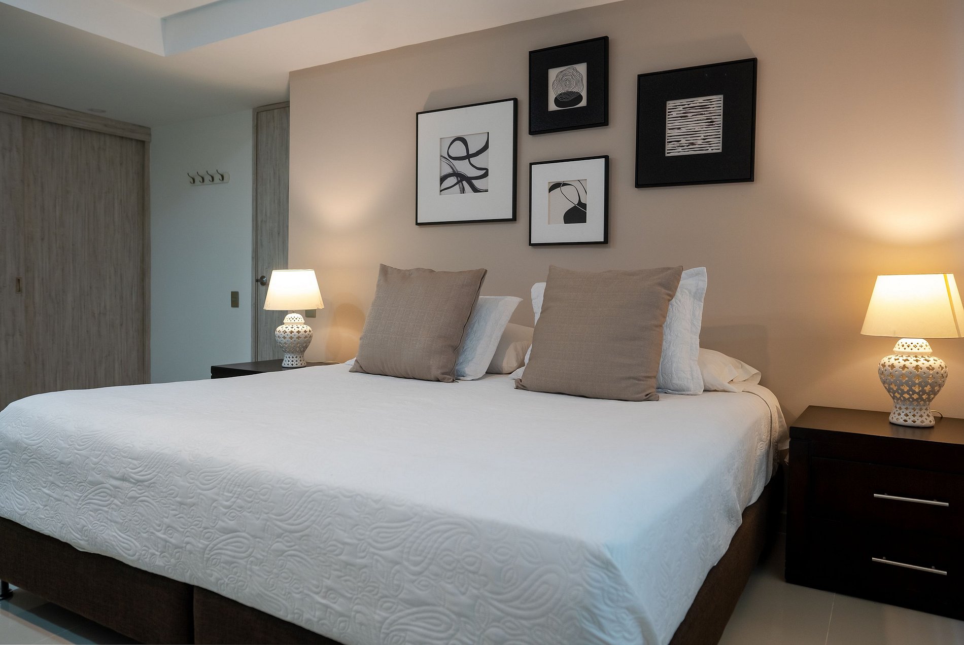 O apartamento possui 3 quartos e capacidade máxima para 10 pessoas, embora conte com apenas 5 camas e possibilidade de berço ou cama extra mediante solicitação. Os quartos estão distribuídos da seguinte forma: um com cama king, banheiro privativo, ar-condicionado e smart TV; o segundo com 3 camas, sendo 2 delas de tamanho intermediário (1,20) e outra menor (0,70, ideal para criança pequena), ar-condicionado, televisão e banheiro privativo; e o terceiro com uma cama queen, ar-condicionado e banheiro. A sala está equipada com TV de tela plana e ar-condicionado. Ao lado da sala, encontram-se a cozinha e a sala de jantar. O espaço conta com todos os utensílios necessários para cozinhar, lavar, passar roupa, tomar banho e descansar com conforto. Além disso, oferece internet com Wi-Fi de alta velocidade, ideal para trabalho remoto ou videochamadas com excelente qualidade. Aqui você vai se sentir em casa. A decoração é minimalista e agradável; desde o primeiro momento você perceberá uma energia positiva para aproveitar ao máximo sua estadia. O apartamento também possui um terraço amplo, onde é possível relaxar e contemplar um lindo pôr do sol com vista panorâmica para a Ciénaga de La Virgen, além de um terraço lateral com vista para o mar do Caribe. Durante sua estadia, estaremos atentos a qualquer necessidade, oferecendo orientações para passeios e excursões. Temos certeza de que você não vai querer ir embora.