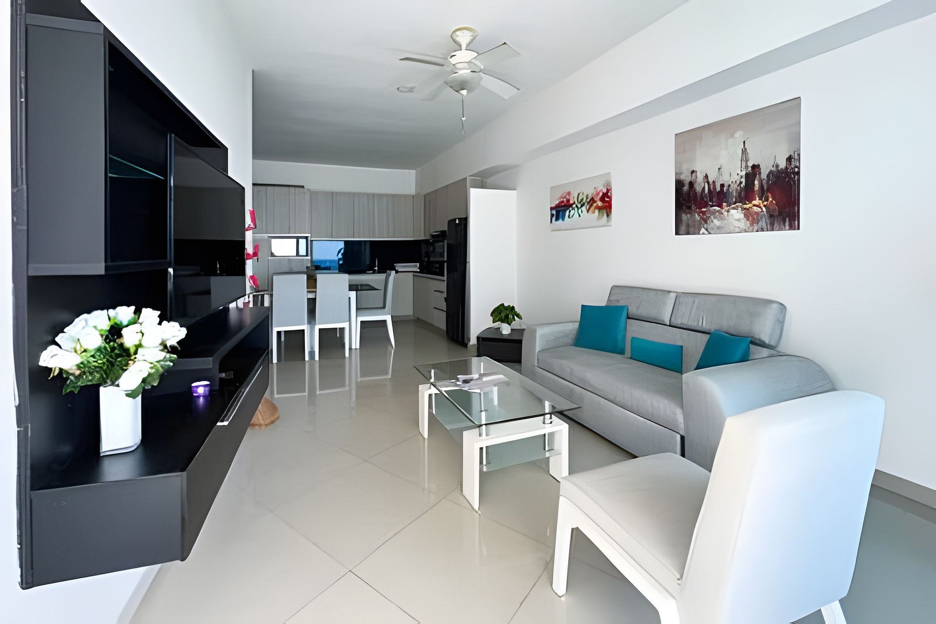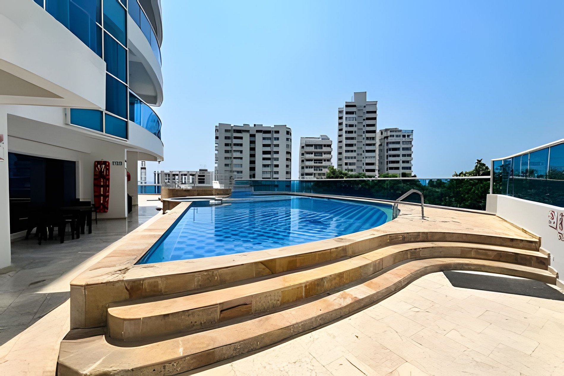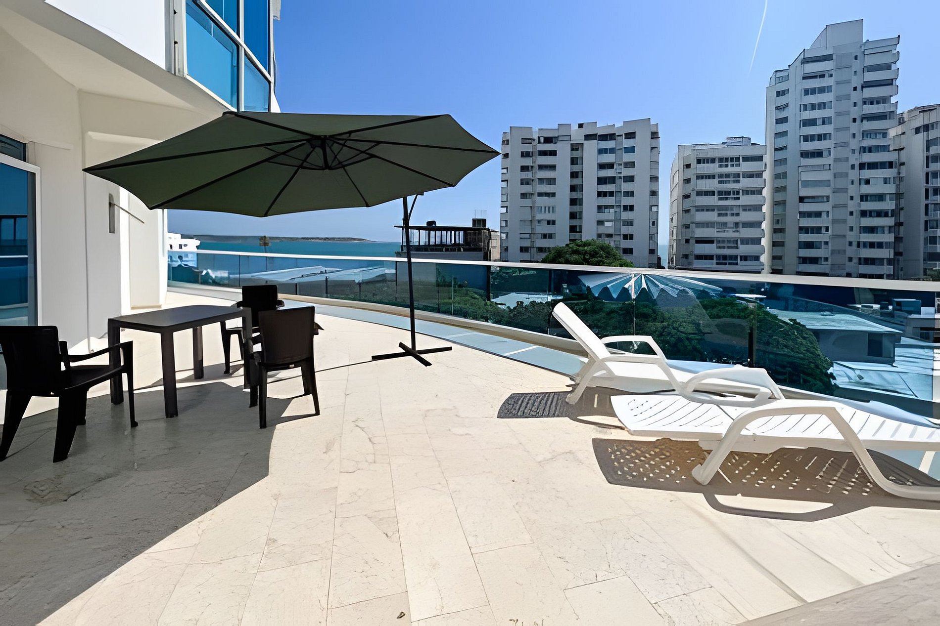 Exclusivo y moderno apartamento con todas las comodidades para hasta 6 personas en el imponente edificio Poseidon del Caribe en el sector de Laguito, a 6 km del aeropuerto y junto a unas de las mejores playas de la ciudad. El edificio cuenta con seguridad 24/7, Piscina y Gimnasio. El apartamento consta de gran balcón con vista panorámica al mar, 2 dormitorios, 2 baños completos, cocina abierta y aire acondicionado