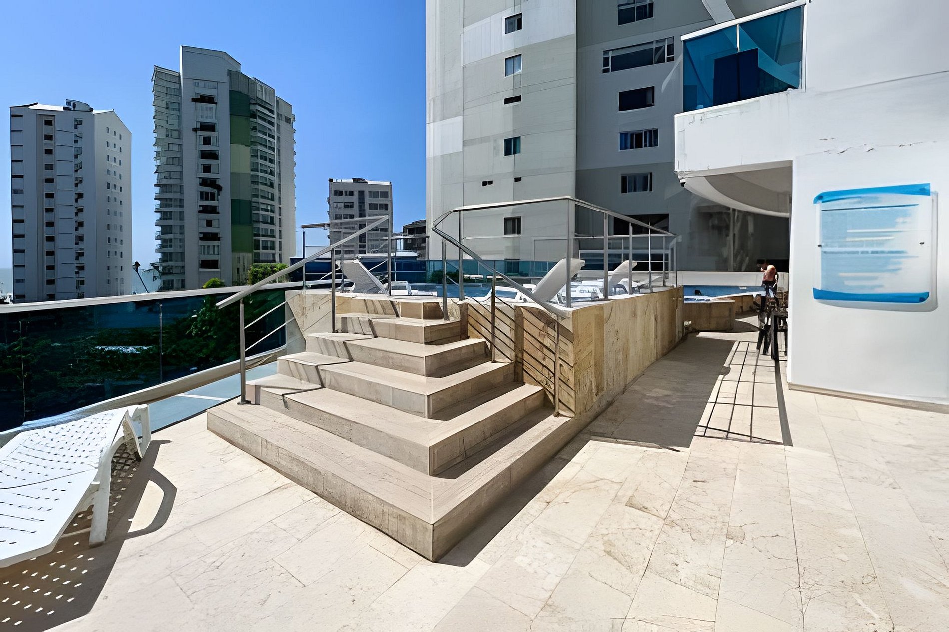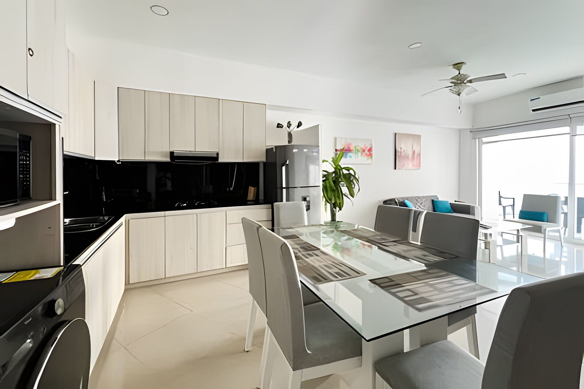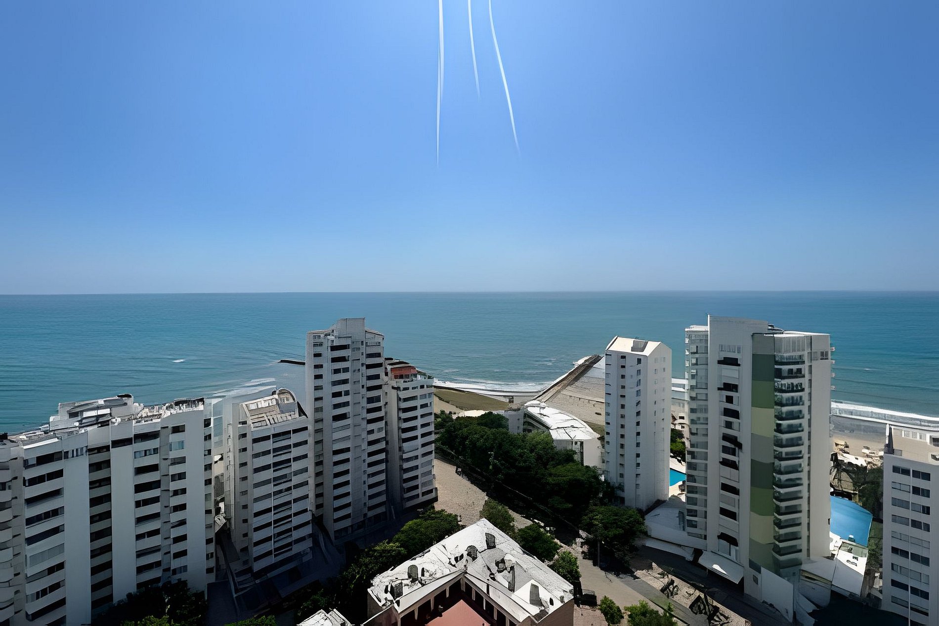 Exclusivo y moderno apartamento con todas las comodidades para hasta 6 personas en el imponente edificio Poseidon del Caribe en el sector de Laguito, a 6 km del aeropuerto y junto a unas de las mejores playas de la ciudad. El edificio cuenta con seguridad 24/7, Piscina y Gimnasio. El apartamento consta de gran balcón con vista panorámica al mar, 2 dormitorios, 2 baños completos, cocina abierta y aire acondicionado