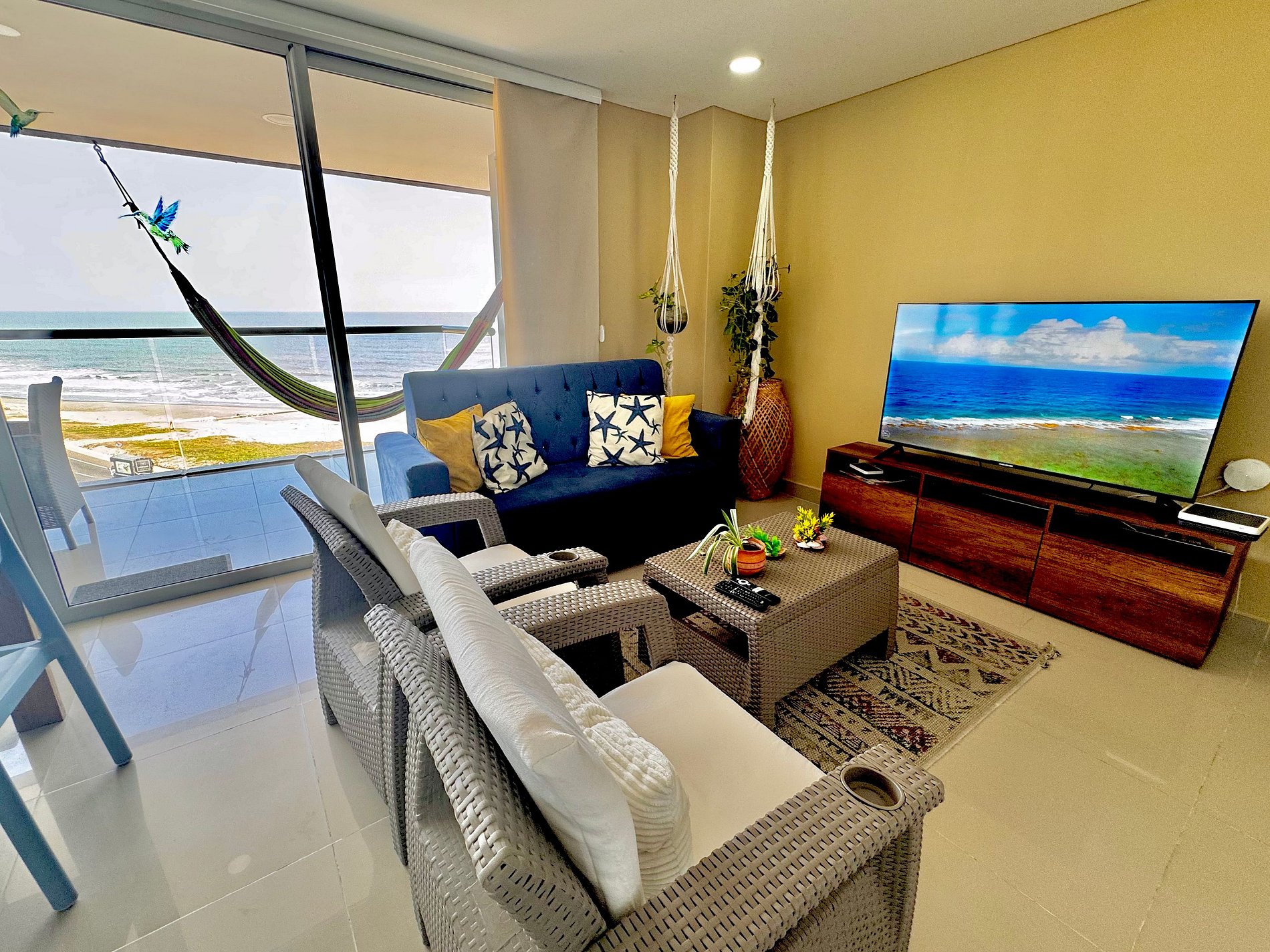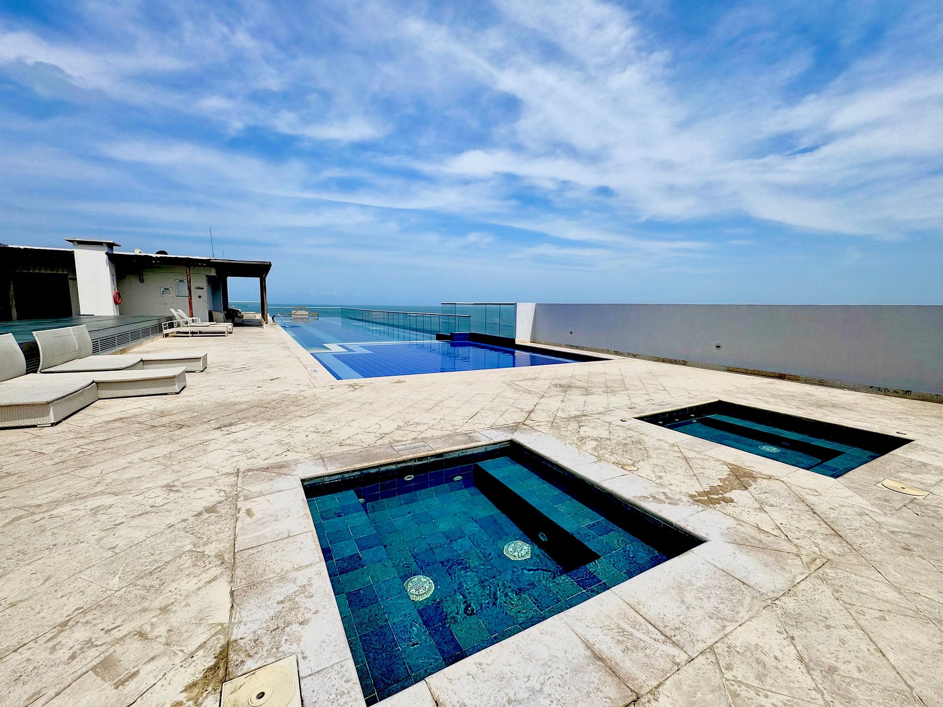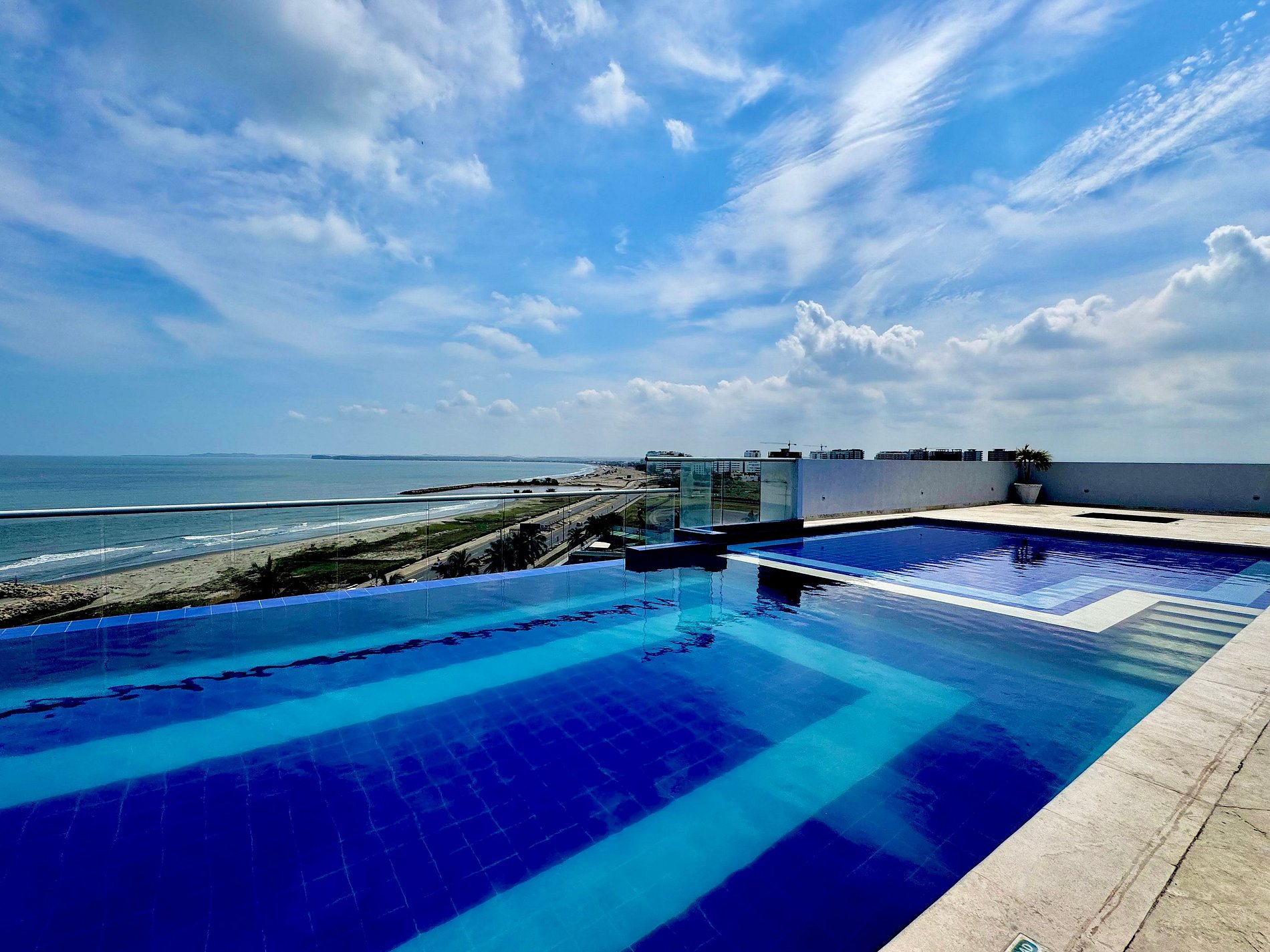 Acogedor Apartamento de 3 dormitorios en la zona norte La Boquilla, frente al mar en el sector de Crespo . A 2 minutos del aeropuerto y 10 del centro histórico de Cartagena. Rodeado de mini mercados, droguerías, restaurantes y cómodas vías de acceso. El edificio cuenta con piscina, gimnasio, salón social para eventos, vigilancia 24/7. El apartamento consta de gran terraza con vista panorámicas al mar, 3 habitaciones, 2 baños, cocina abierta, aire acondicionado y dos parqueaderos en linea.